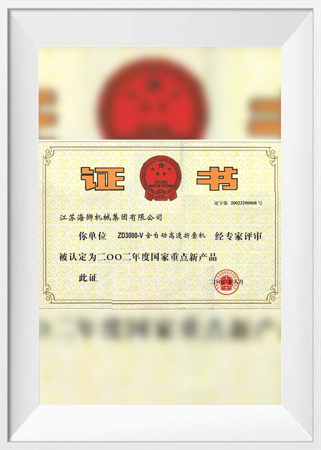 2002 Nuevo producto clave a nivel nacional: Máquina plegadora
