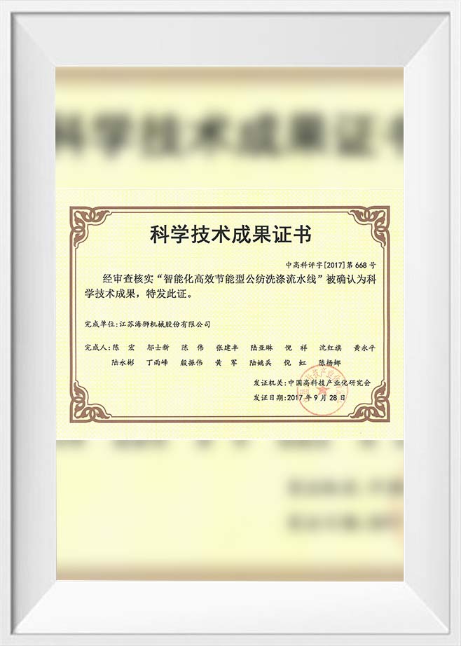 28 de septiembre de 2017 Certificado de Logro Científico y Tecnológico (Tecnología Inteligente de Lavado y Secado)